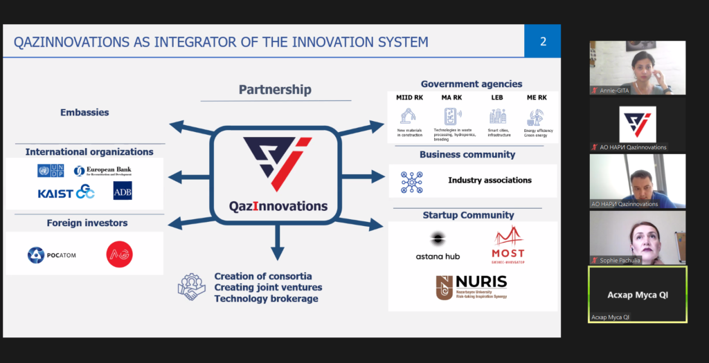 Zoom алаңында Грузияның Инновациялар және технологиялар жөніндегі агенттігі (GITA — Georgia’s Innovation and Technology Agencyі) Халықаралық байланыстар департаментінің директоры Ана Вашакмадземен кездесу өтті.